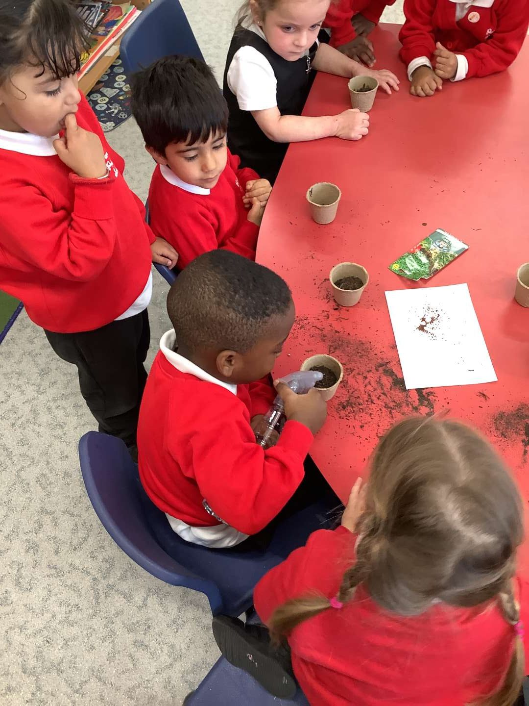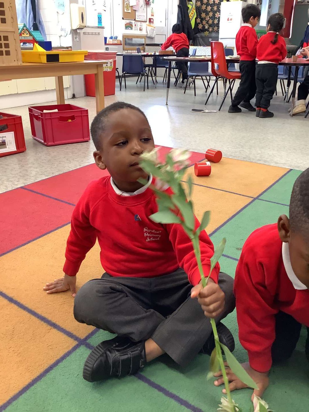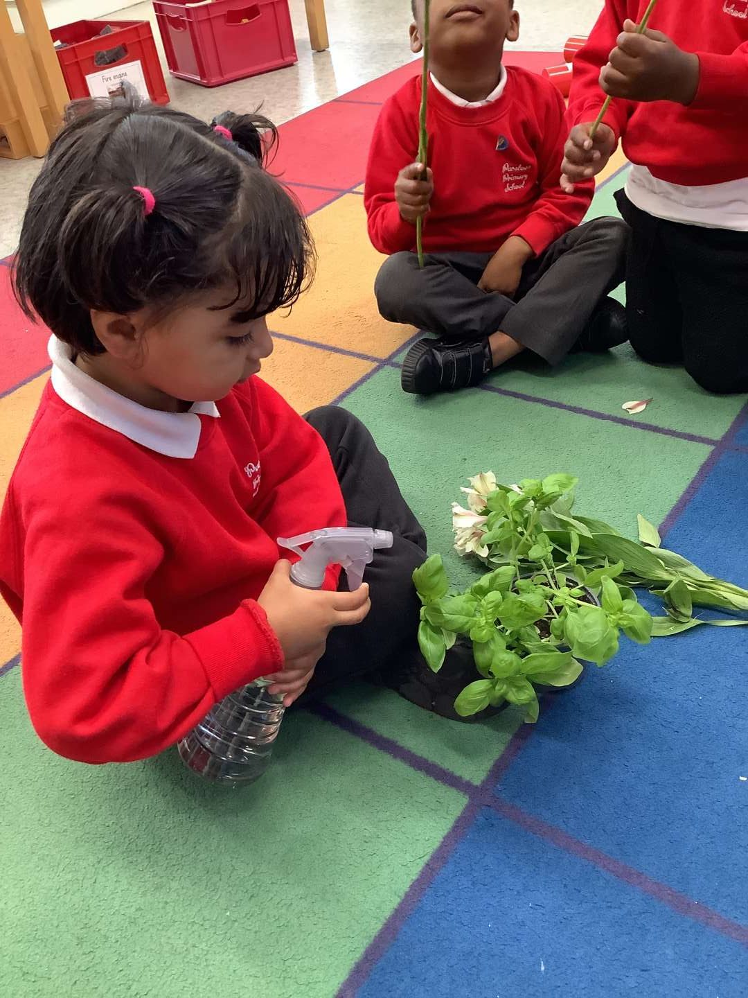 As we welcome the start of the Summer Term, in Nursery we have started our new unit of work – ‘Living and Growing.’ For our entry point we planted some cress and spring onion seeds and are looking forward to helping them grow over the next few weeks. We looked at how plants grow and have understood that we need to give them light and water. In our Science lesson we also looked at different plants / flowers so we could see the different parts of them.