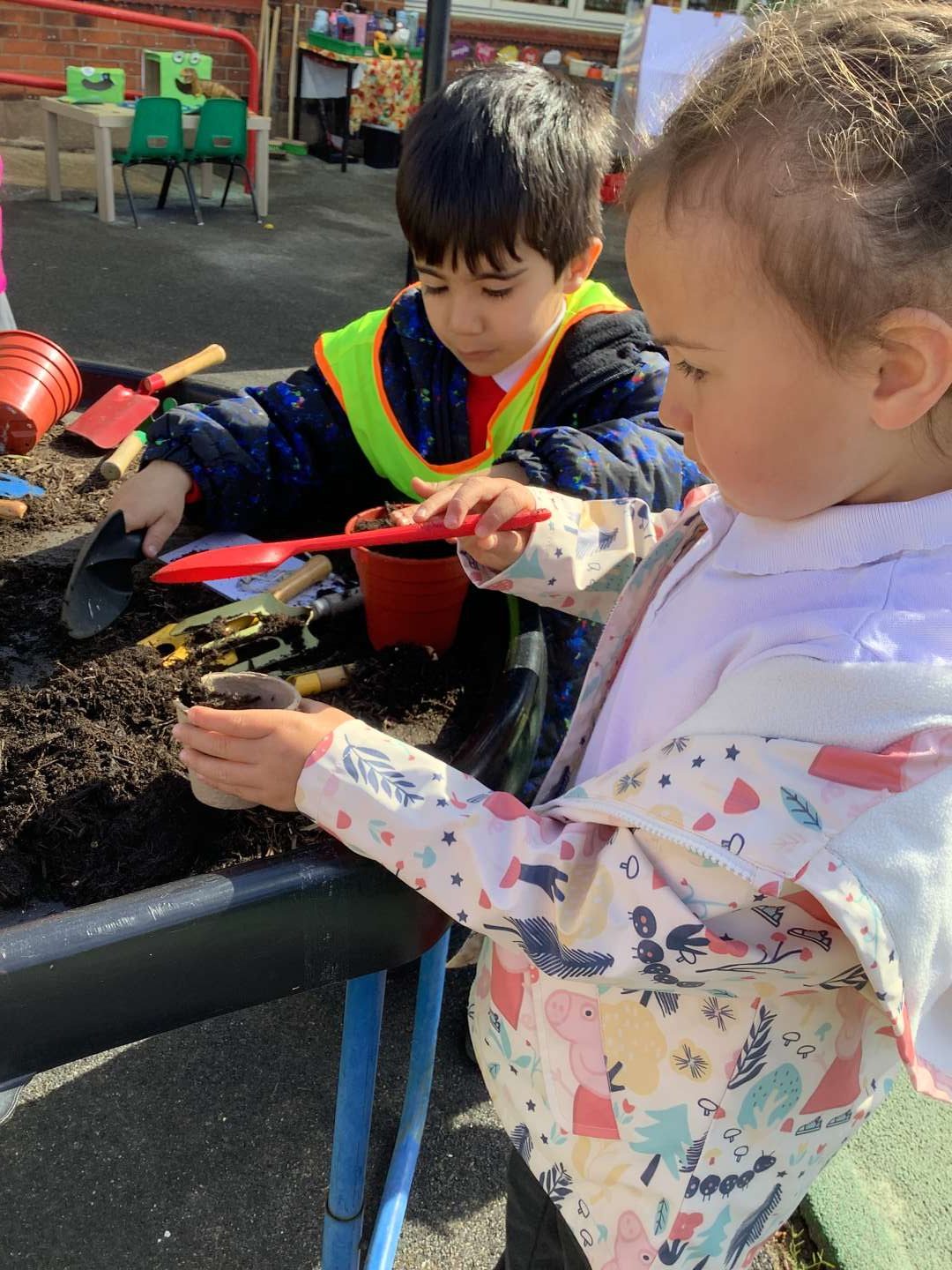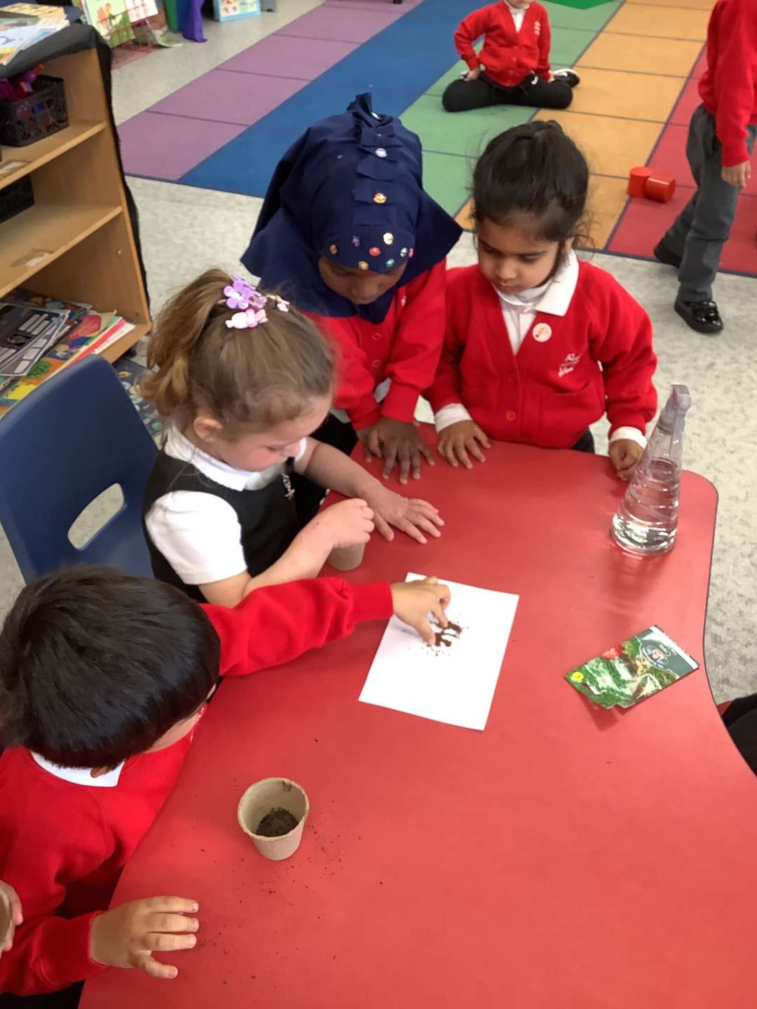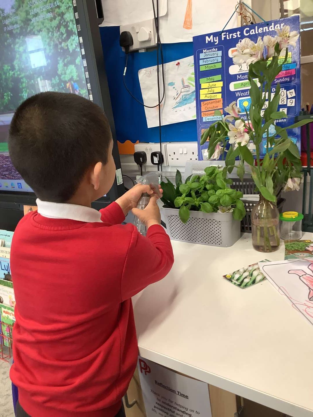 As we welcome the start of the Summer Term, in Nursery we have started our new unit of work – ‘Living and Growing.’ For our entry point we planted some cress and spring onion seeds and are looking forward to helping them grow over the next few weeks. We looked at how plants grow and have understood that we need to give them light and water. In our Science lesson we also looked at different plants / flowers so we could see the different parts of them.