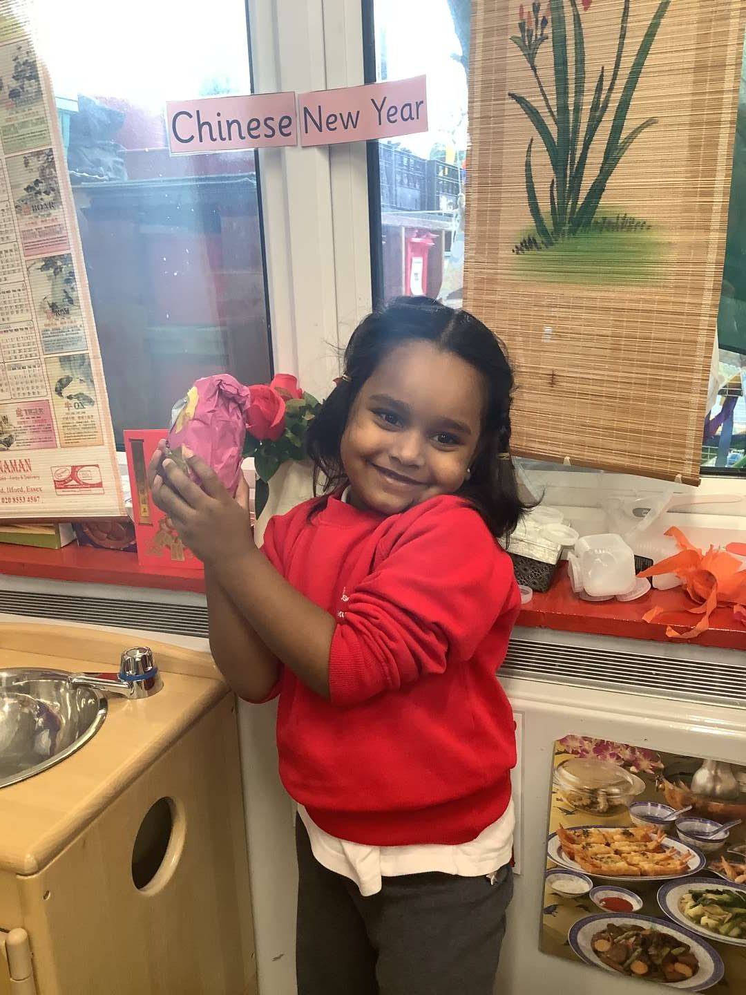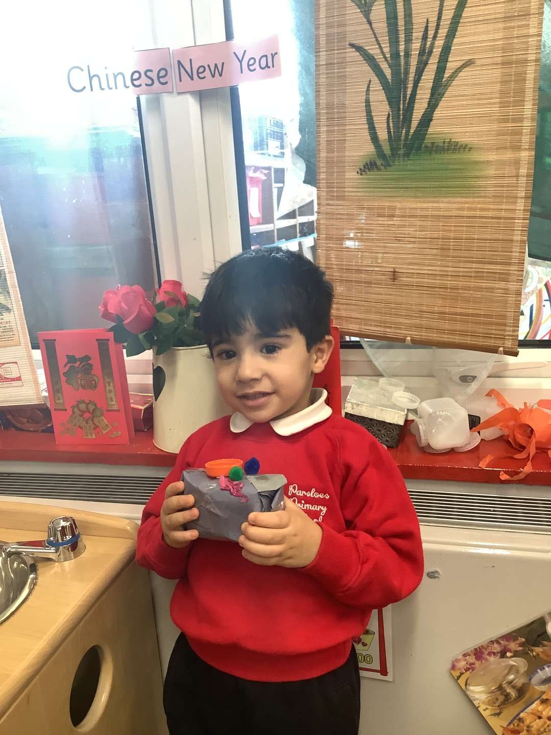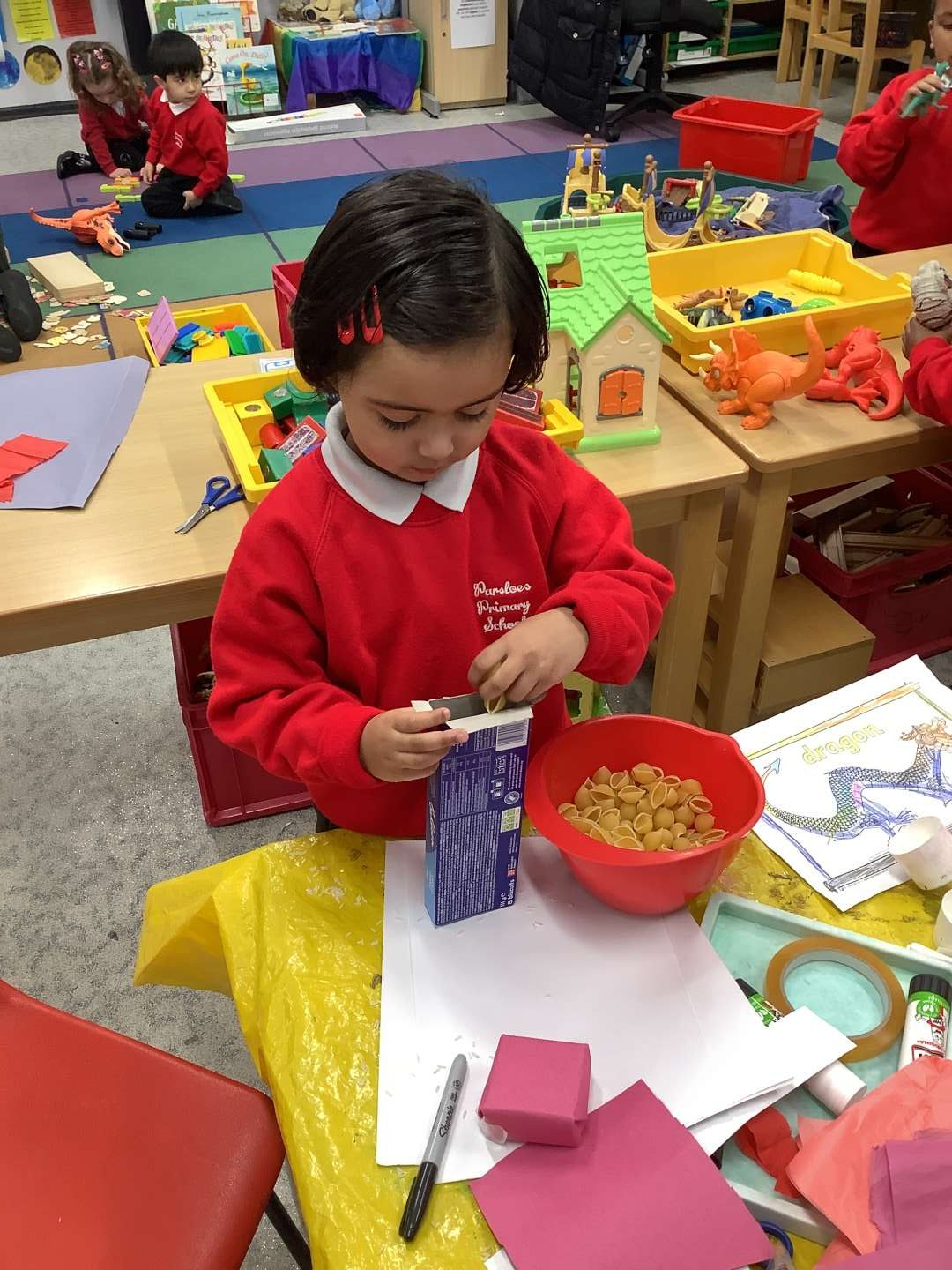 In Nursery this week we have been focusing on our Big Question – ‘How can we create our own music’. We have had an enjoyable time making our own instruments, using different boxes and then decorating them with pom poms and tissue paper. Inside the boxes, we filled them with rice and pasta so when we shake them, we create our own music. Next week we will be using these to accompany our dragon dance for Chinese New Year.
