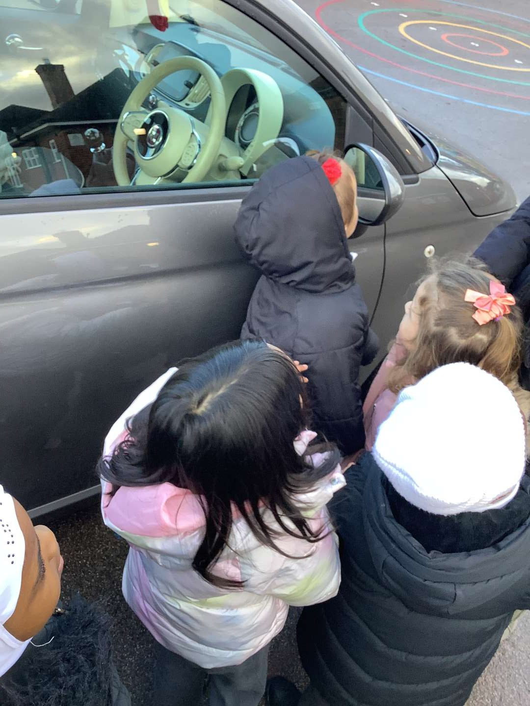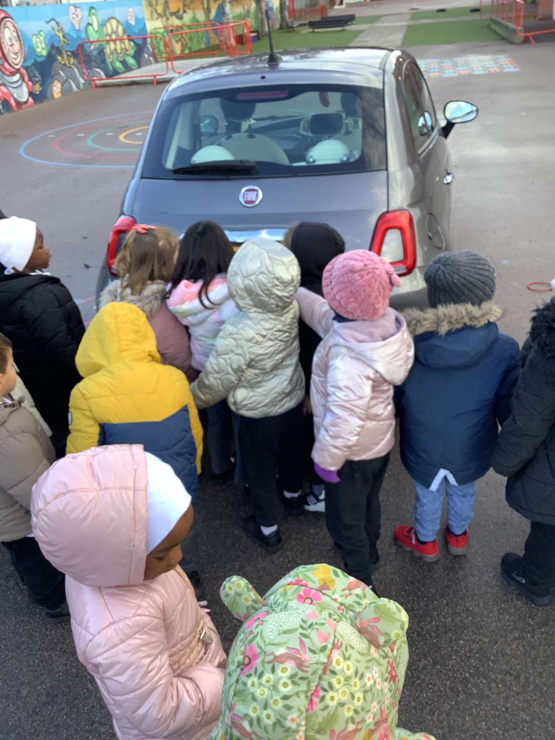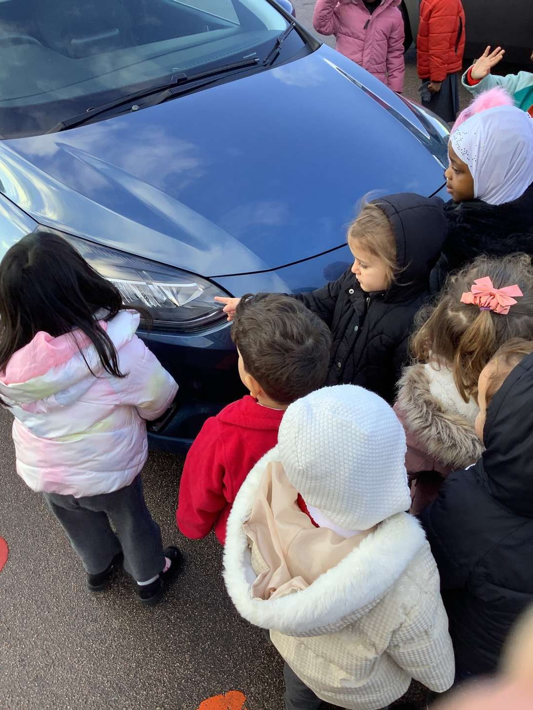 In Nursery this half term we are looking at our Big Question: ‘How do vehicles go?’ We have looked at different toy vehicles in the provision; speaking about the wheels, engine and steering wheel. However, this week was very exciting for us, as we had the opportunity to take a look up-close with a real car. We have learnt the names of the different parts, which we were able to find. Some of us even sat in the driver’s seat! But don’t worry we did not drive anywhere!