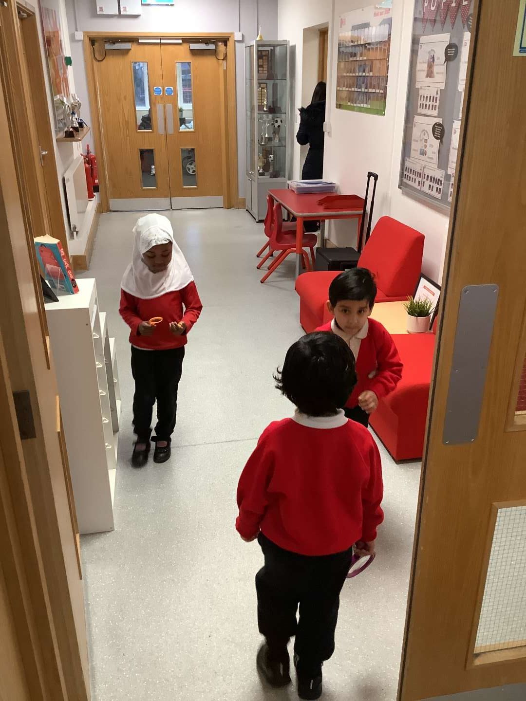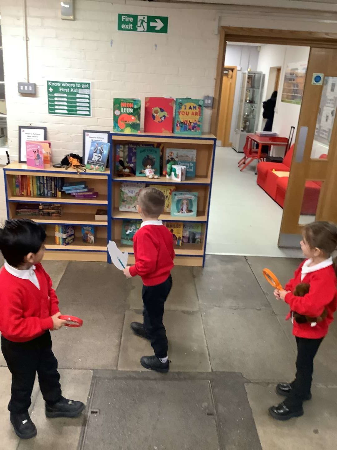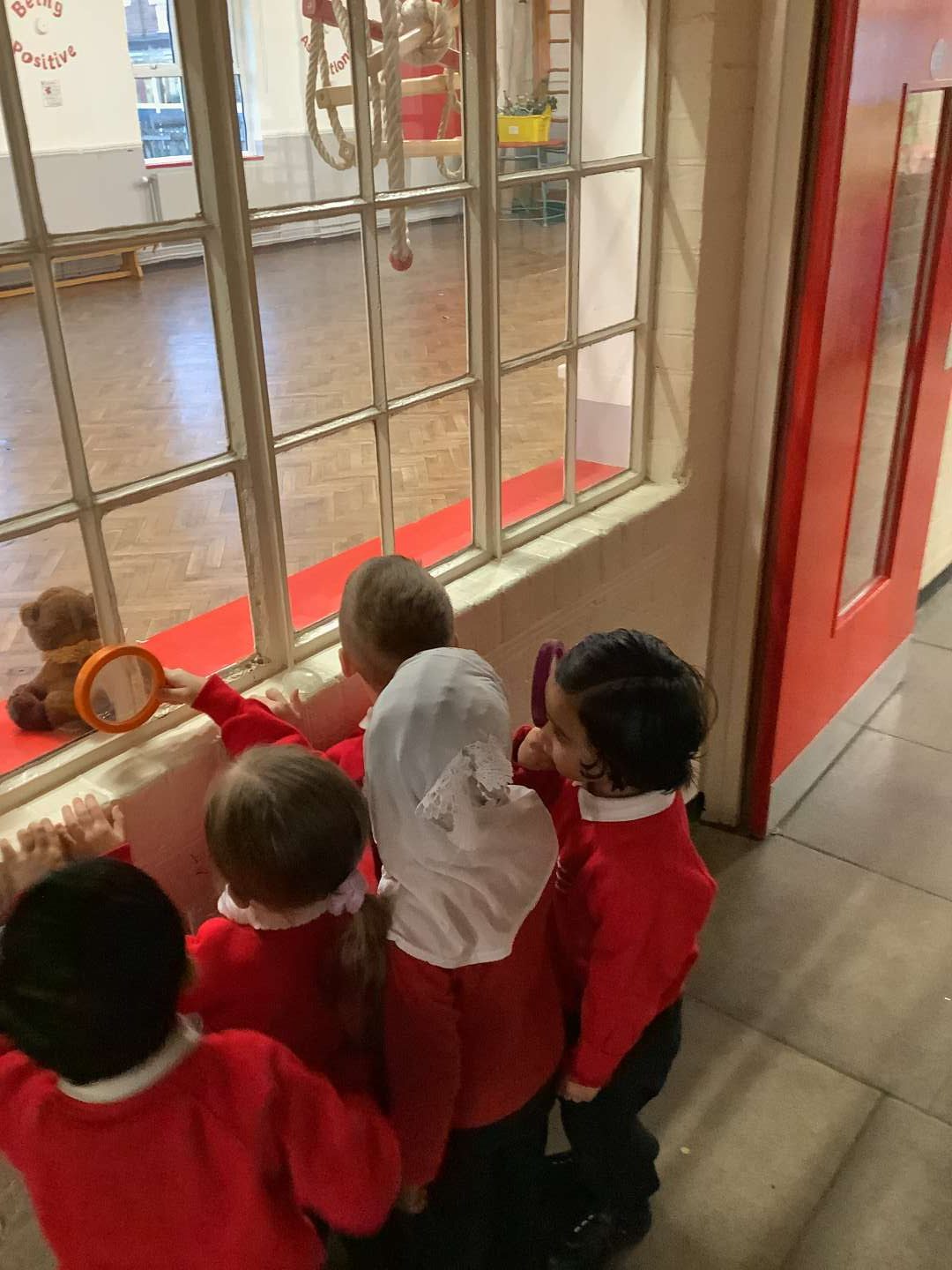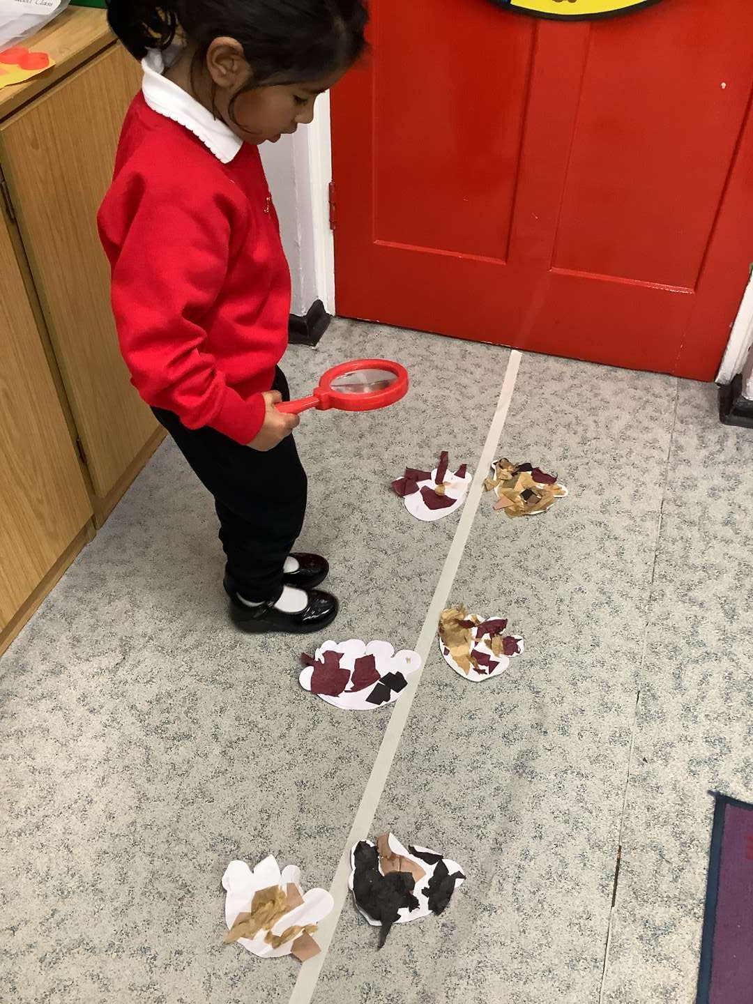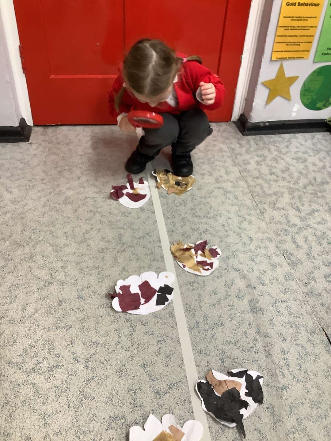 We have introduced our new Talk for Writing text this week, which is ‘We’re Going on a Bear Hunt’ by Michael Rosen. To start with, our entry point, was going on a bear hunt around the school. We used magnifying glasses to help us search for any bears. When we returned to the classroom, we found a path with bear prints on. I wonder who made those…