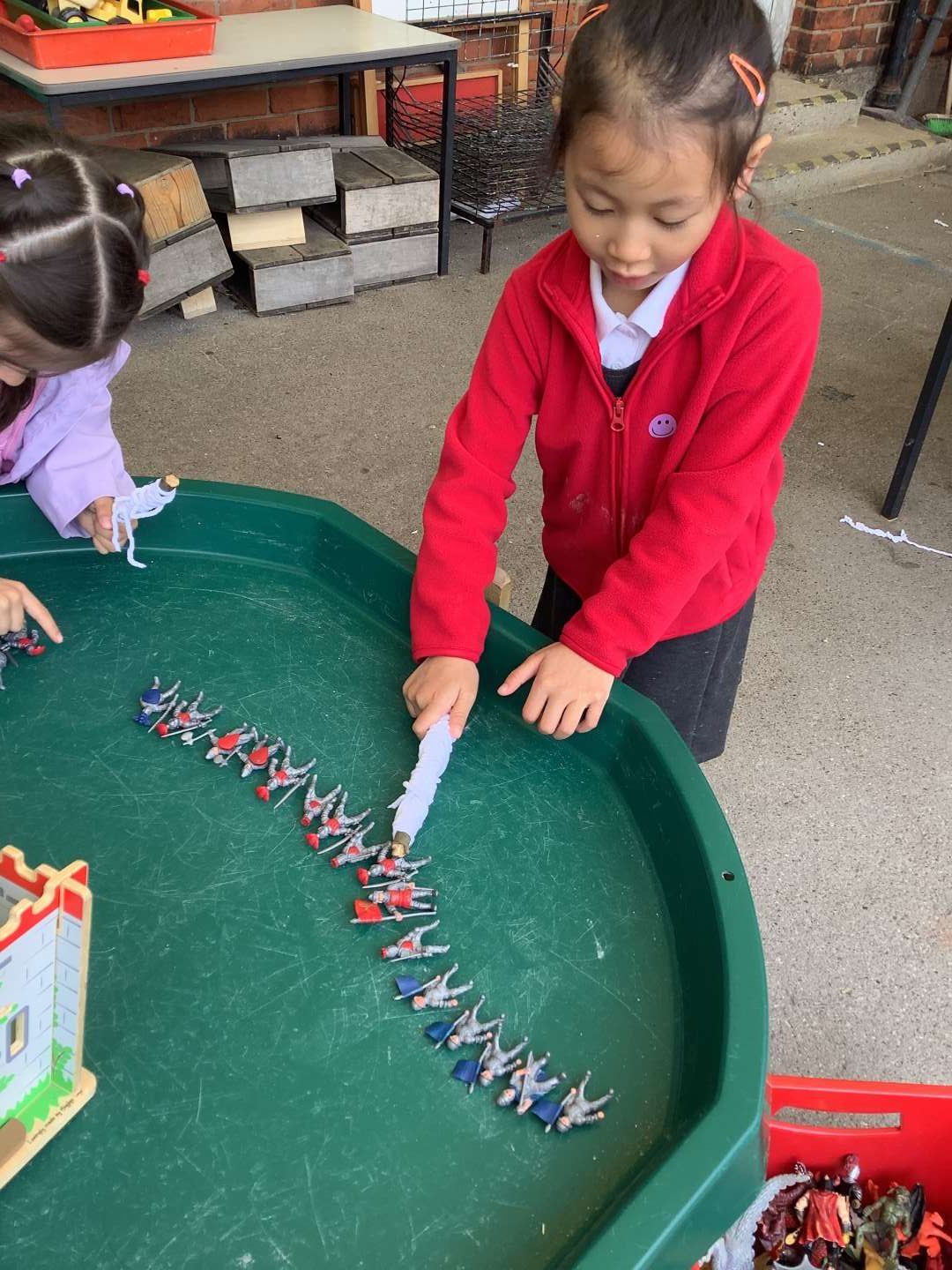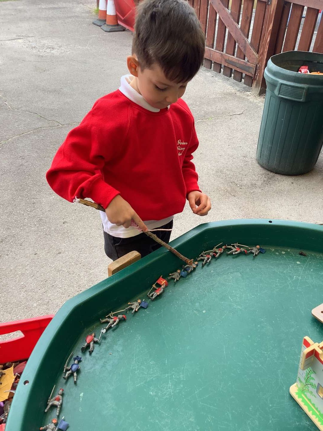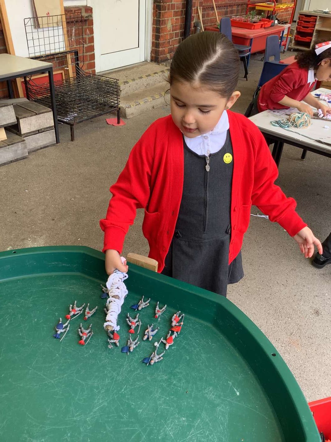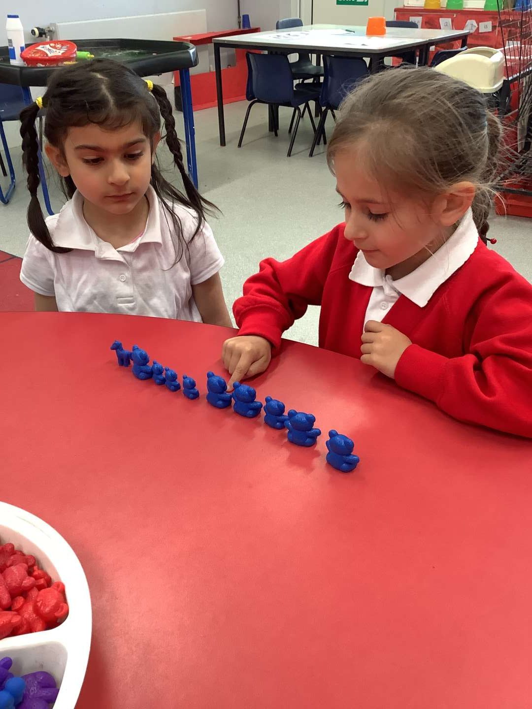 In maths this week Hedgehog Class have been learning how to count up to 20 objects accurately. We have learnt to line the objects up and touch each object as we say the number name. In the garden we have made counting sticks by winding wool around sticks. We have used the counting sticks to count a variety of different objects.