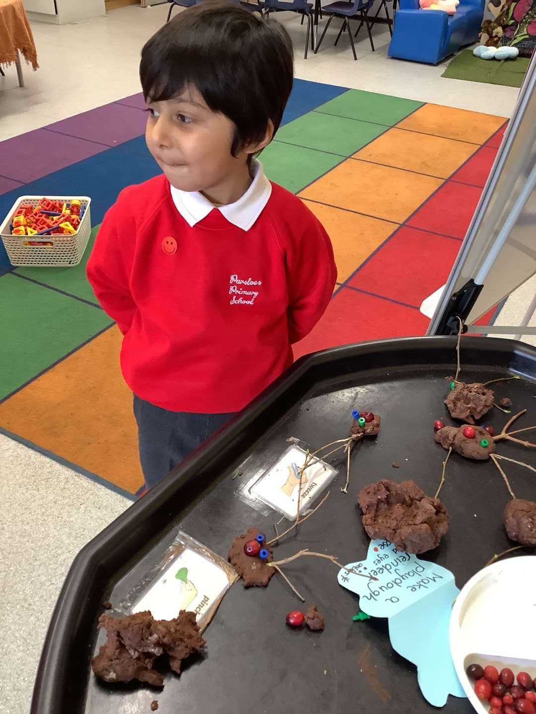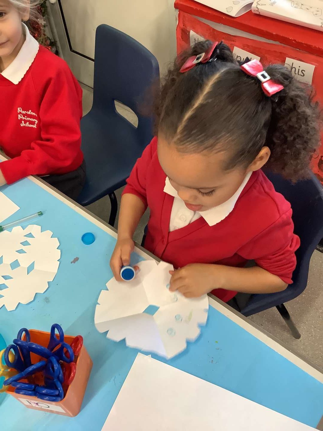 This week we have been making reindeers out of playdough, making small cuts in paper to make snowflakes, using tweezers to decorate a Christmas jumper and using pipettes to squirt vinegar onto bicarbonate of soda and make Christmas fizz. These activities will all help build that strength we need.