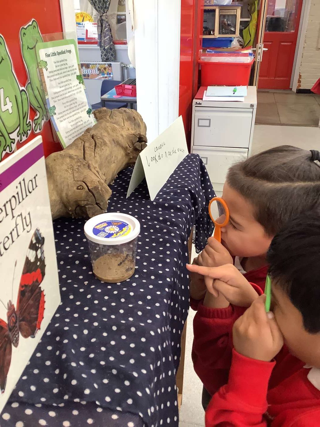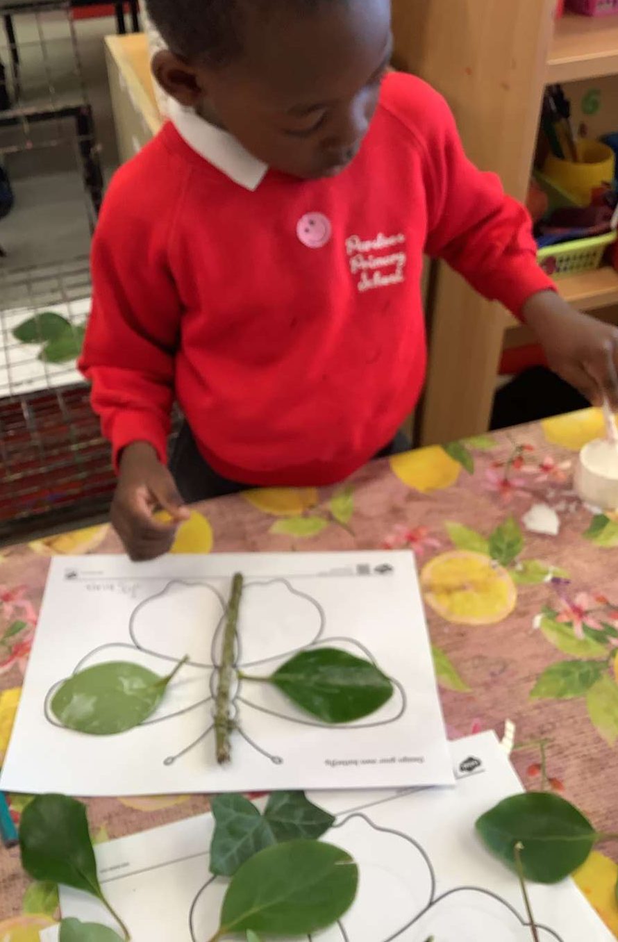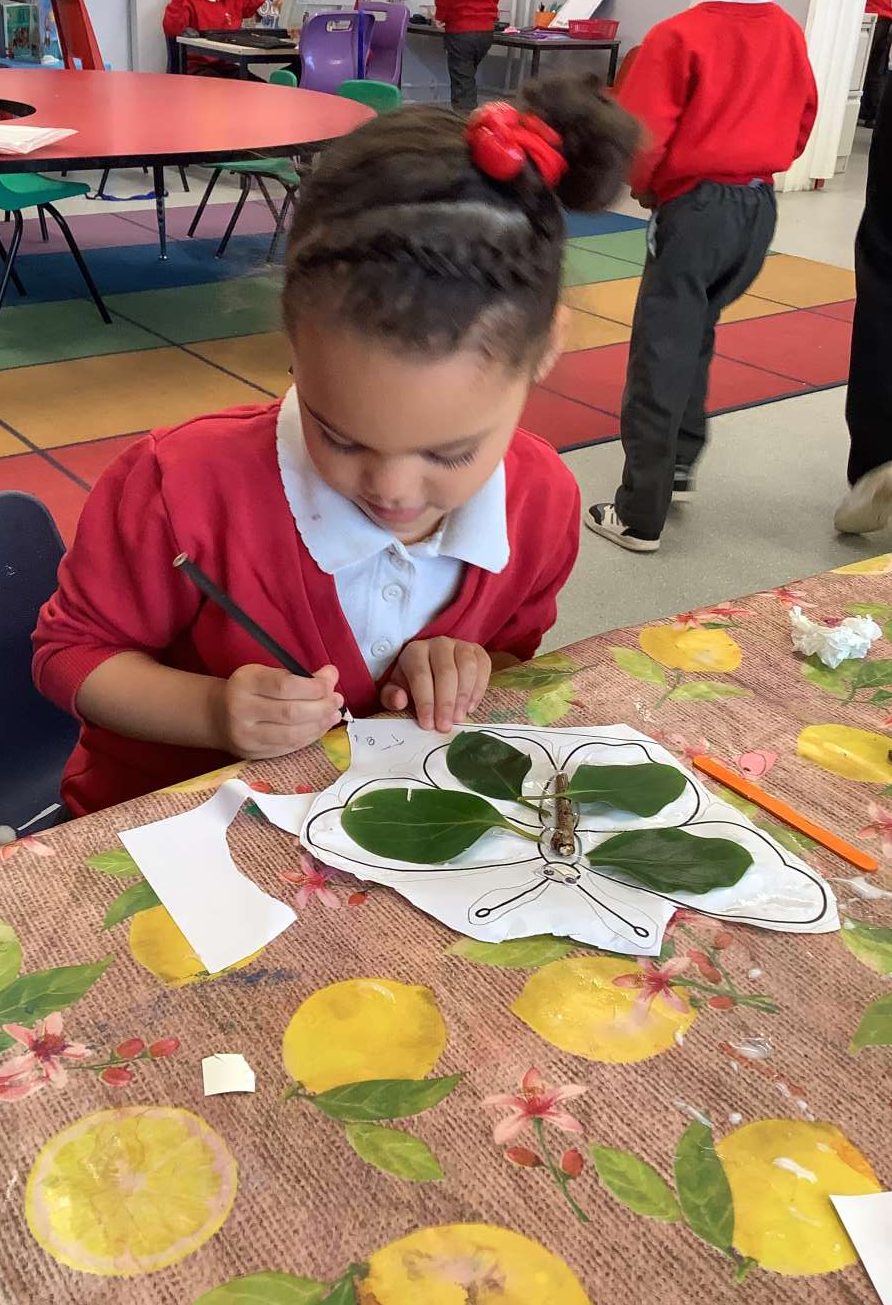 Hedgehog Class have been learning about the life cycle of the butterfly. We are really lucky and have caterpillars in our class which we are observing carefully. They are growing longer and fatter and we can see their legs now. We have been learning how they will change into butterflies and we have been creating butterflies using natural objects.