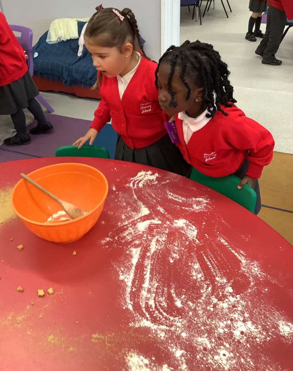 When we arrived at school on Monday morning, we found that somebody had made a mess in the classroom! We had lots of fun looking for clues and working out what had happened. We received a letter from a worried old lady who explained she had baked a Gingerbread Man, but he jumped up and ran away! She apologised for making a mess and baked some gingerbread biscuits to for us to taste!