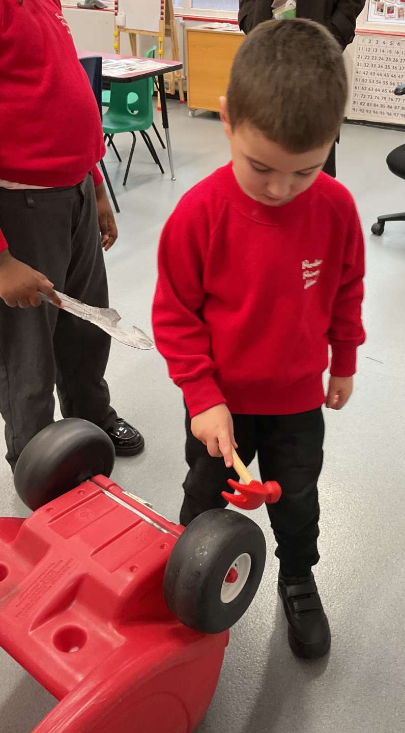 In the ARP we explored different careers. In one room we wondered whether we wanted to be a mechanic. We looked at the different parts of a car and then used spanners and screwdrivers to fix our toy car. In another room some of us decided we wanted to be a train driver. We practised driving ‘Thomas the Tank Engine’ and then looked at more modern trains. We found out that some of them go very fast. Finally, we thought about what entertainers do. We practised singing and dancing together.