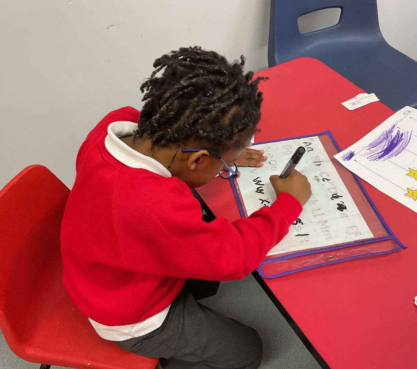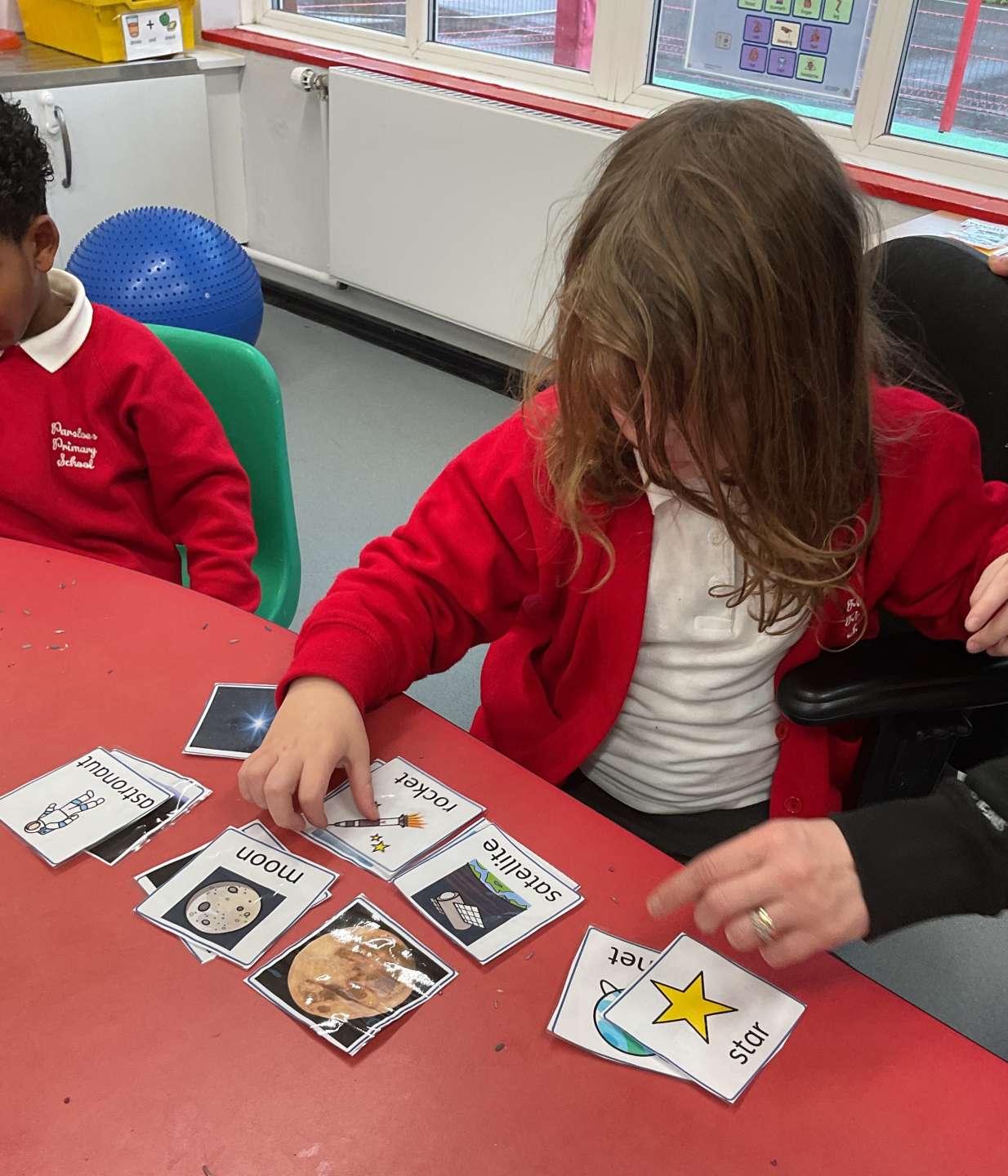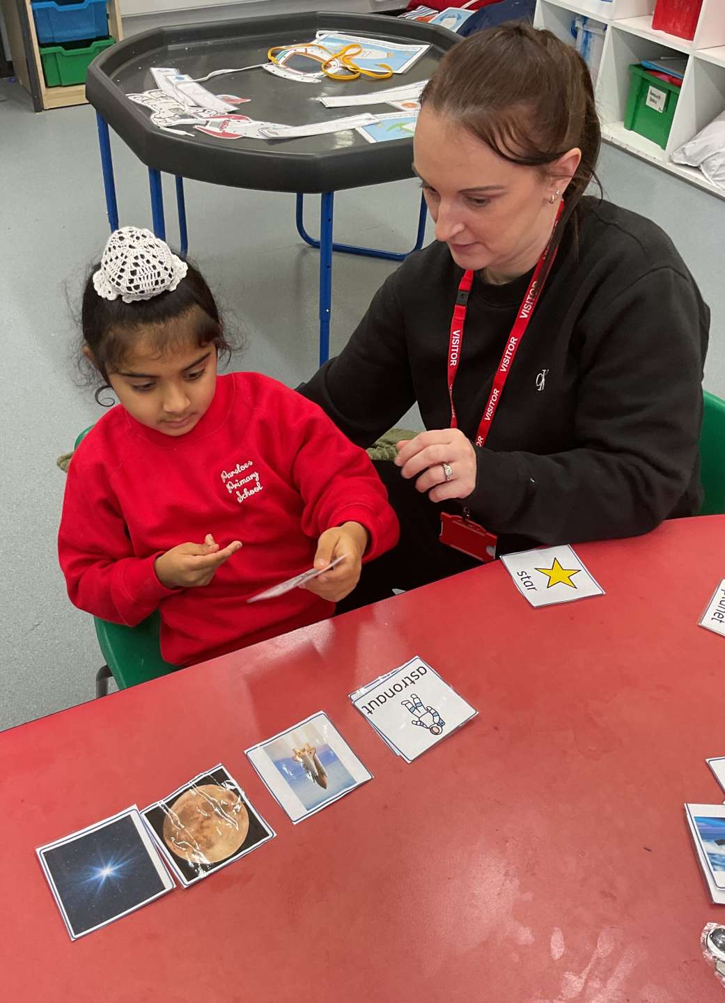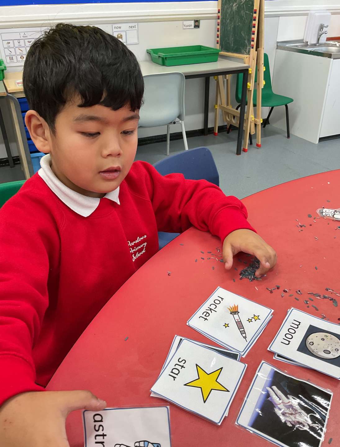 We have all been working hard this week. In English some of us were able to match pictures of items and characters from our story, Ten Little Aliens, with real life examples. While others decided that they wanted to practise their letter formations. As you can see we all concentrated very well.