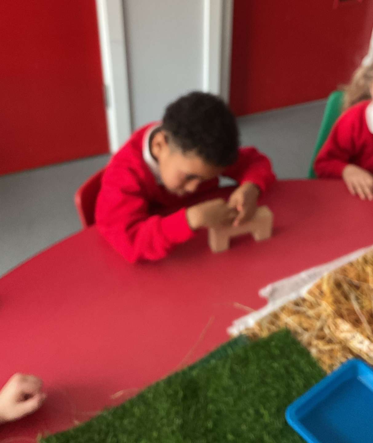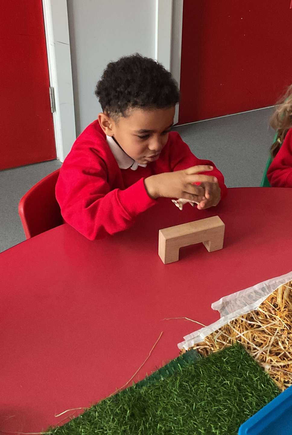 Later, we used the small world goats and helped them across the bridge. We could do the actions and tried hard to use the words, ‘trip trap’.