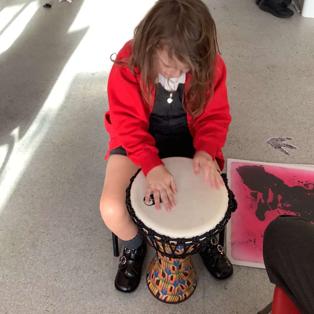 This week in Meadow room, we have been using instruments in our music lesson. We have been exploring a beat on a drum, following a beat and then repeating it on our own drums.