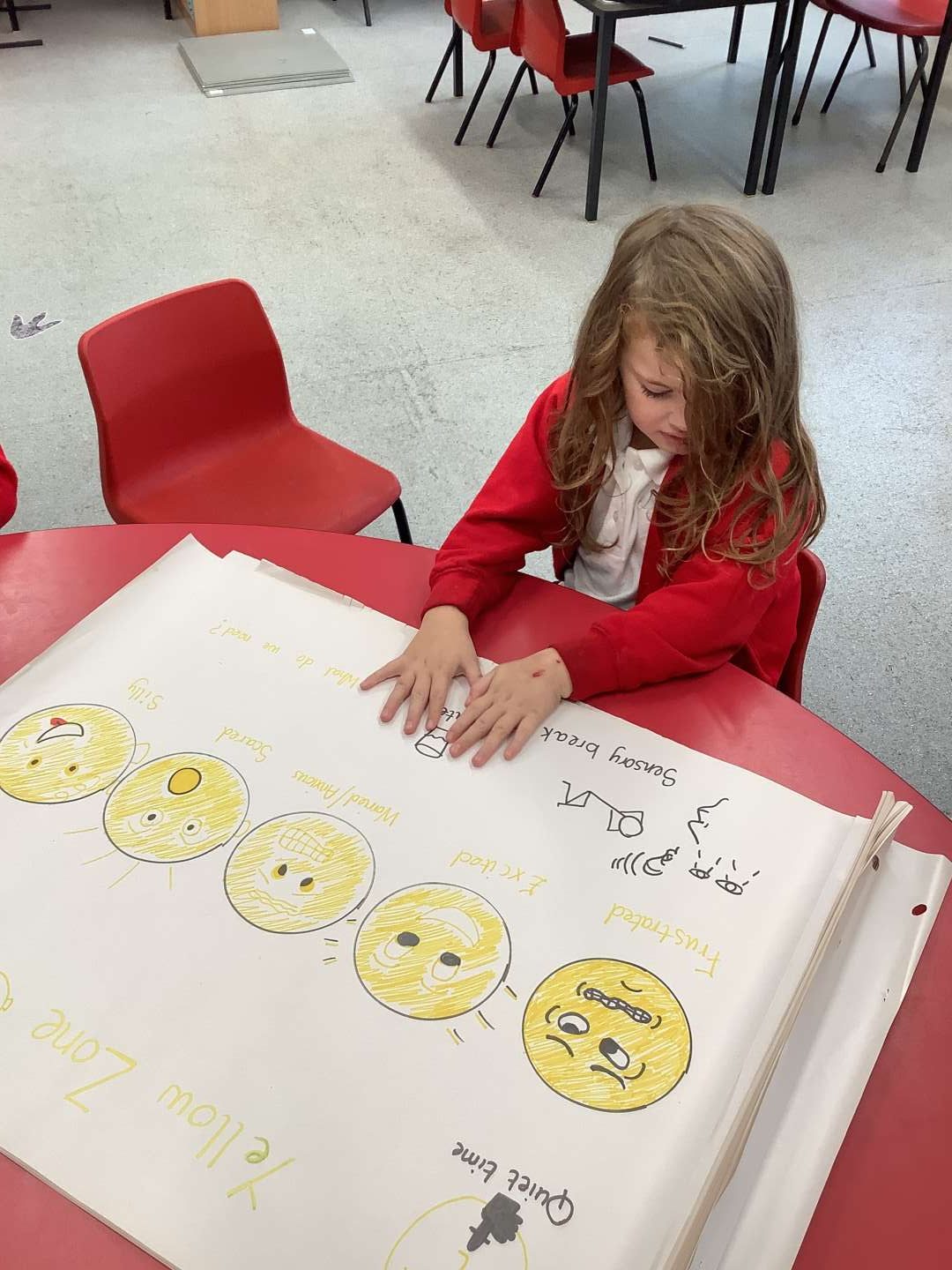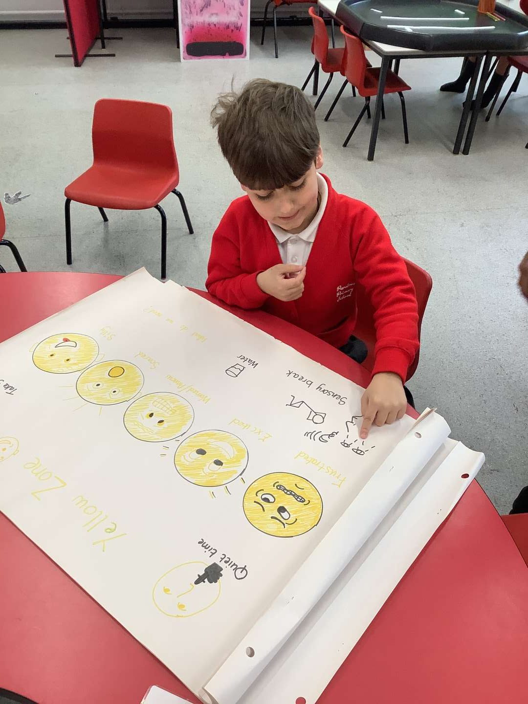 Every week in the Meadow, we have looking at different emotions. We have been learning how they affect us and what we can use as strategies to try and help us to get back to ‘Green Zone’ or feeling happy and calm. This week we have been looking at the ‘Yellow Zone’ this zone is linked to frustration, being silly, over excited, scared or worried. In the pictures the children are choosing strategies they would like to try to help them think about their emotions.