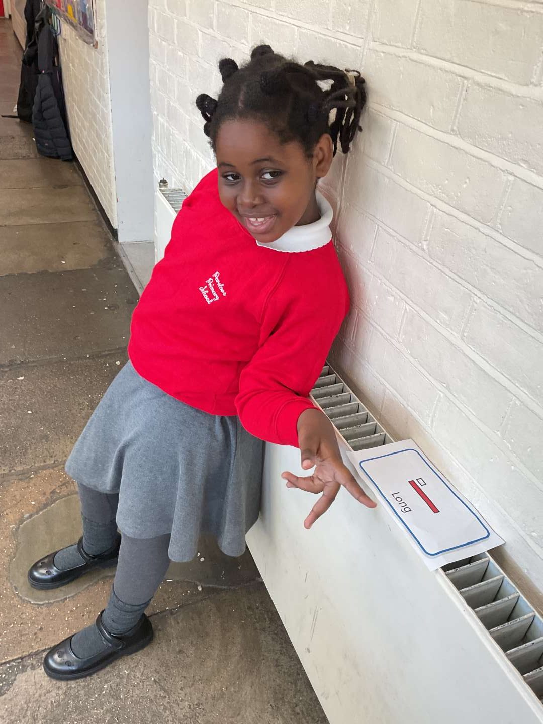 During our Talk for Writing lesson, in the Meadow, we have looked at vocabulary that would help us describe some of the vegetables that featured in Supertato, our Talk for Writing book. Two of the words were ‘long and round’. With visual cards to help us with the meaning, we walked around the school looking for other things that were long and round.