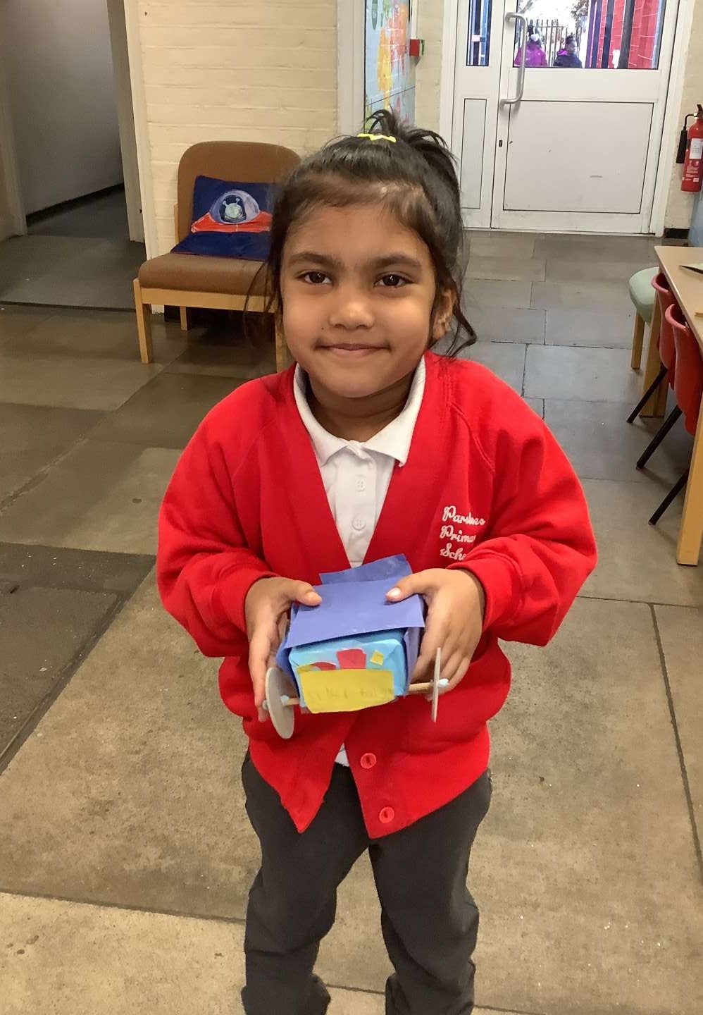 This week, we have become amazing designers! We designed our very own moving vehicle, thinking about what materials we may need and how to attach them together. We then used our designs to create our moving vehicles ensuring they had wheels, axles and an axle holder. We were very proud of our final product!