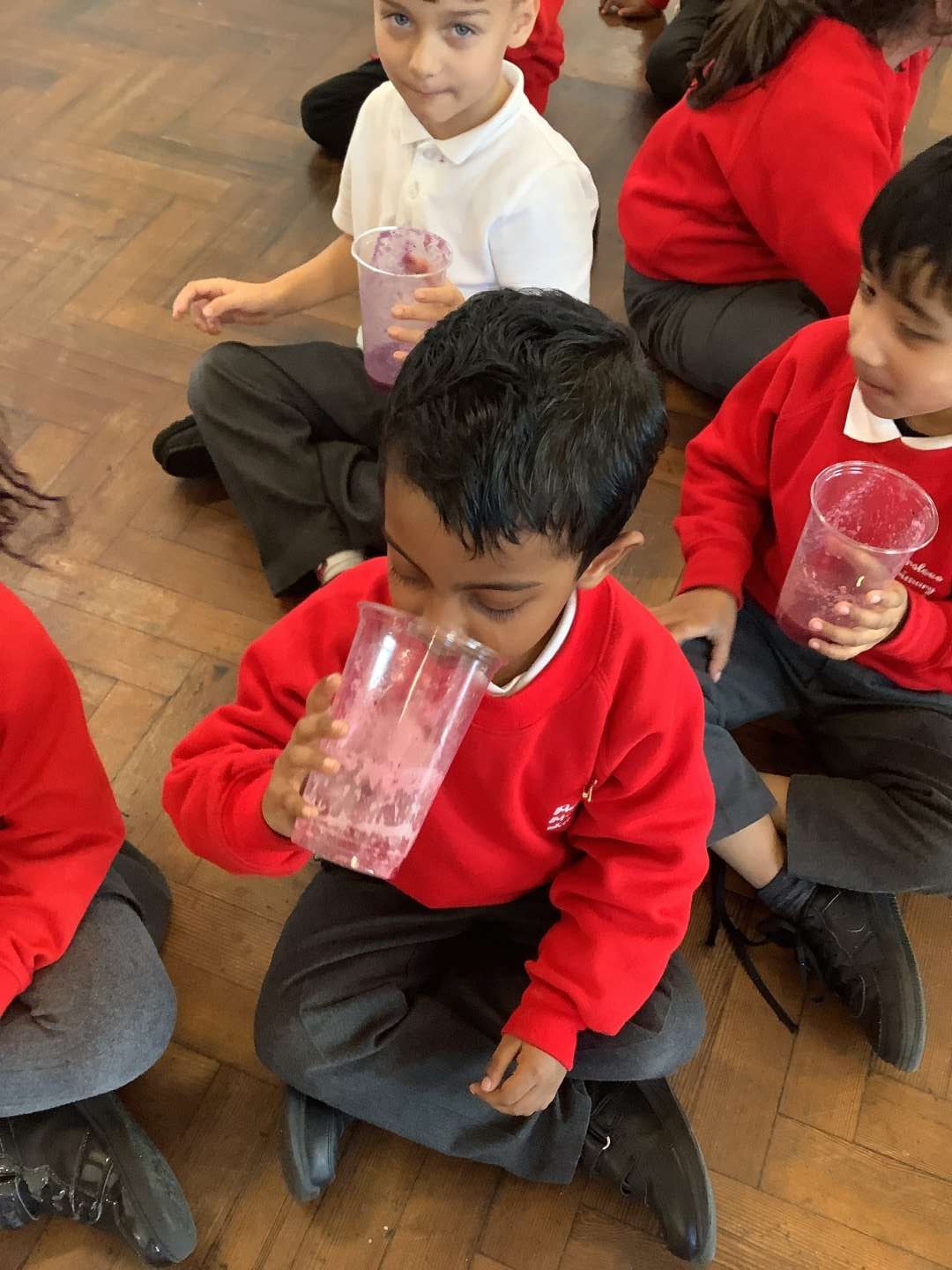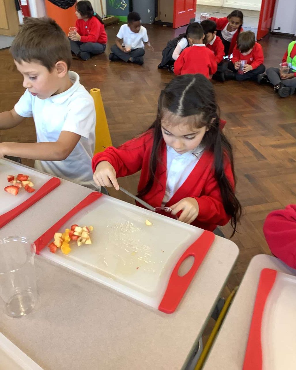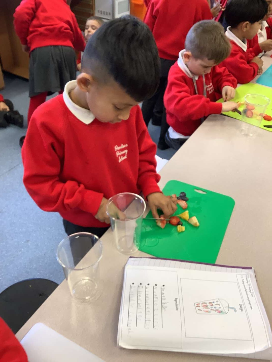 This week Year 1 designed and created their own fruit smoothie! They selected their chosen fruit, used a knife to cut them into pieces and with the support of an adult they blended it together to create a delicious smoothie. The children took their time to taste their smoothies, thinking about the texture and the flavour. They thoroughly enjoyed the finished product!