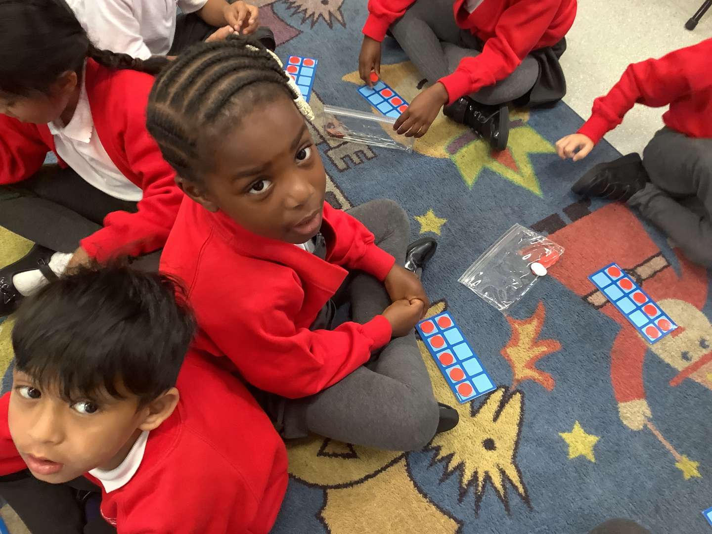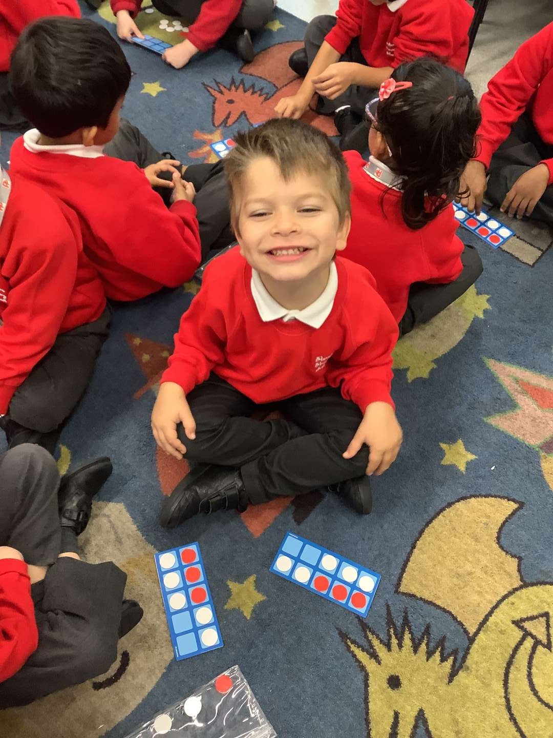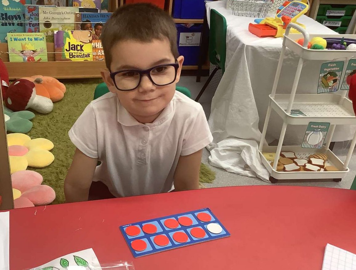 In our Maths lessons this week we have been focussing on our number bonds within 10. We have been learning how to make the numbers 6, 7, 8, 9 and 10. We have represented each number bond on a ten-frame using red and white counters. We enjoyed repeating our stem sentences and learning how to represent our findings by writing our number sentences.