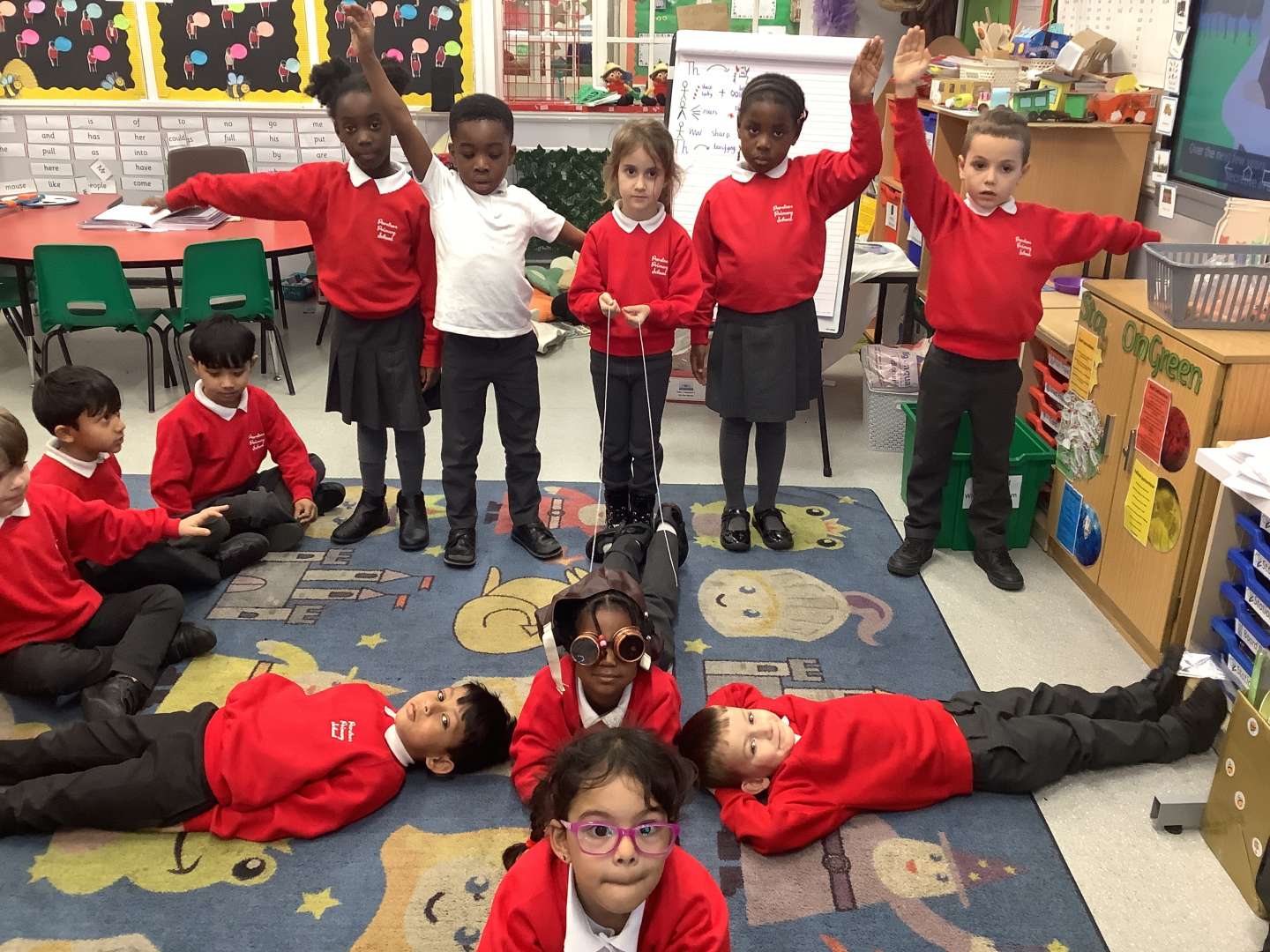 This week, we have been learning about the first ever flight! We watched a video of the flight and found out that the plane flew for 12 seconds over 37 meters. We then went outside to take part in an experiment. We measured how far the plane flew by using a trundle wheel, we set up our timer and tested if we could run the distance in 12 seconds. After that we used the trundle wheel to measure how far we managed to run. We were very impressed with how far we had travelled! We came back to class and explored how the plane worked, by looking at the different parts and using our bodies to create them. We cannot wait to find out even more!