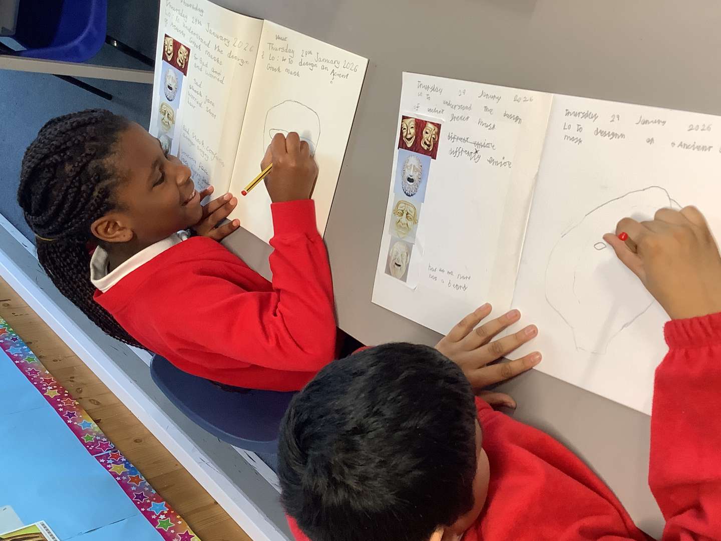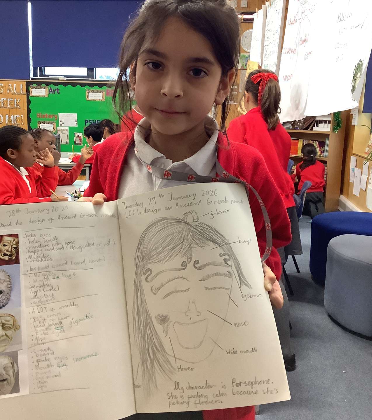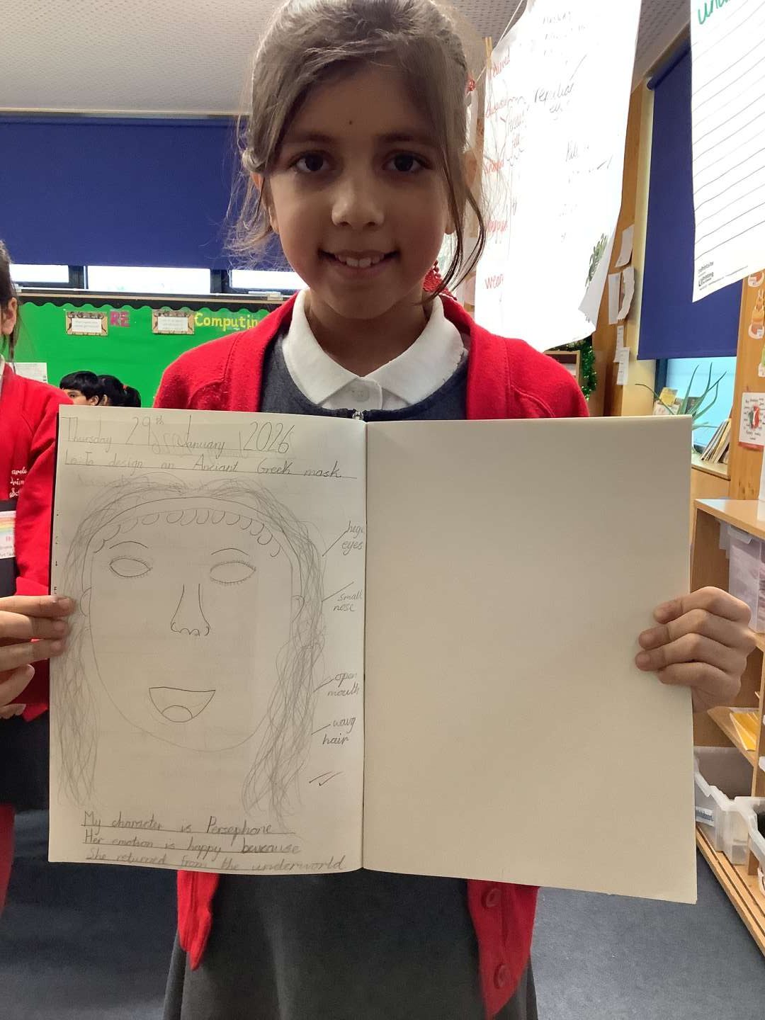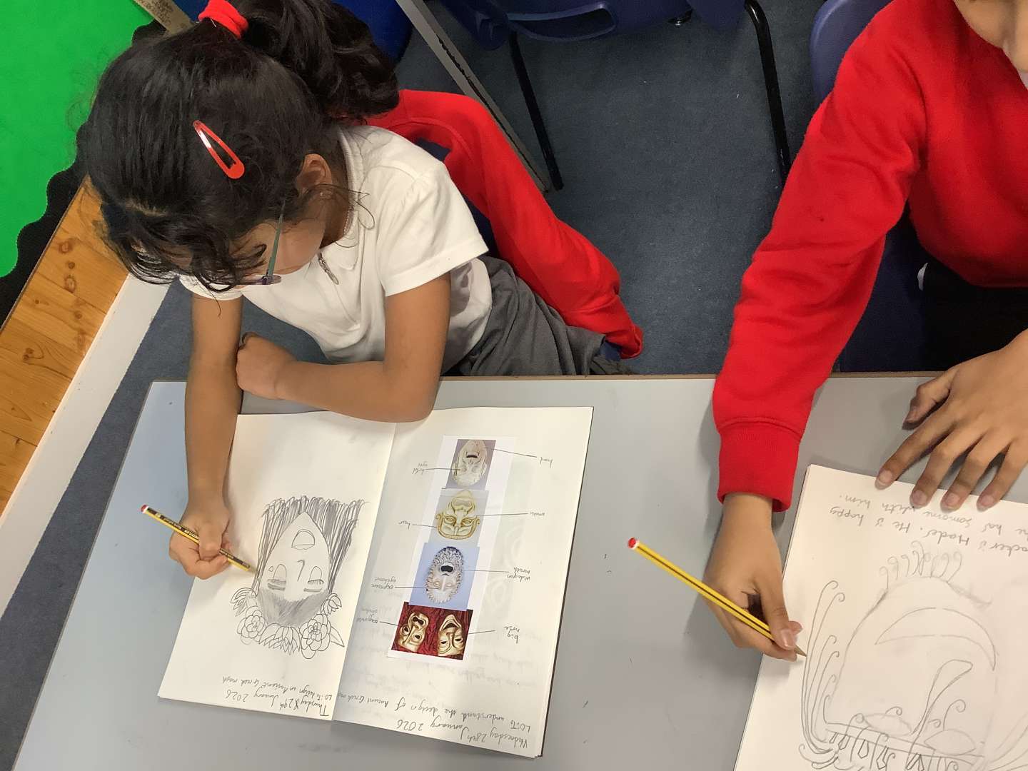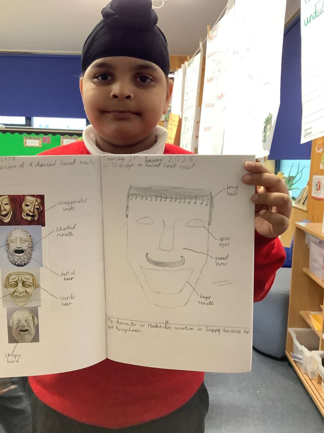 This week, we have been learning about the masks that the Ancient Greek actors would have worn to portray character and emotion. We discussed how human features would be exaggerated to create an expressive mask. We have designed masks based upon the characters from the story of Persephone. Next week, we will be sculpting our masks in clay.