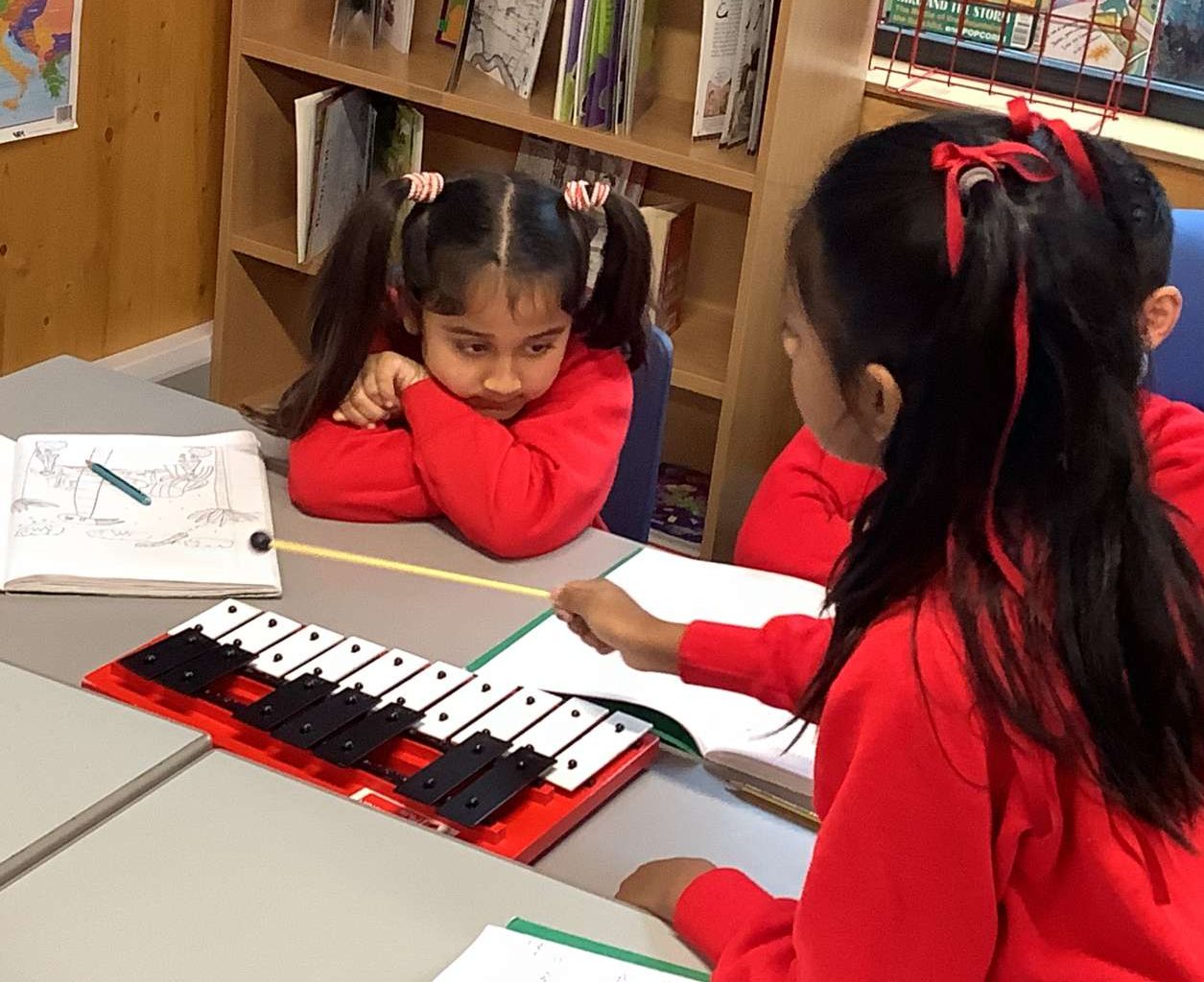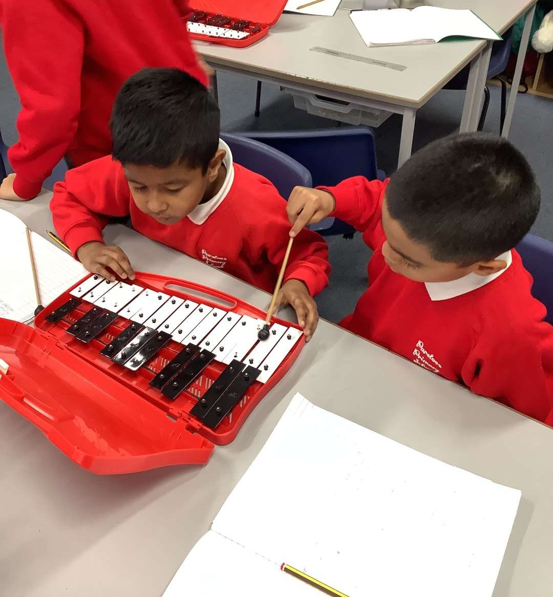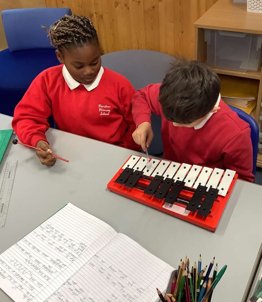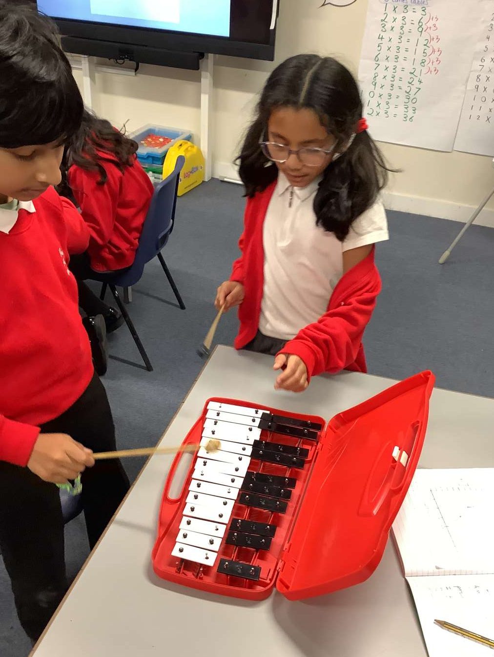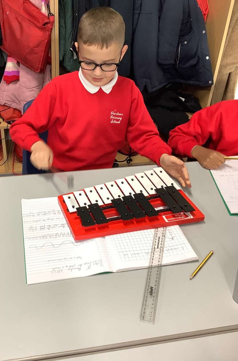 In Science this week, we have been exploring sound. We discovered that the pitch of a sound depends on how high or low a sound is. We also discovered that soundwaves travel slowly when the pitch is low and quickly when the pitch is high. Our discovery led us wanting to investigate: “How can we change the pitch of a sound on an instrument? We used glockenspiels for our investigation and identified that the smaller keys made a higher pitched sound whilst the bigger keys made a lower pitched sound.