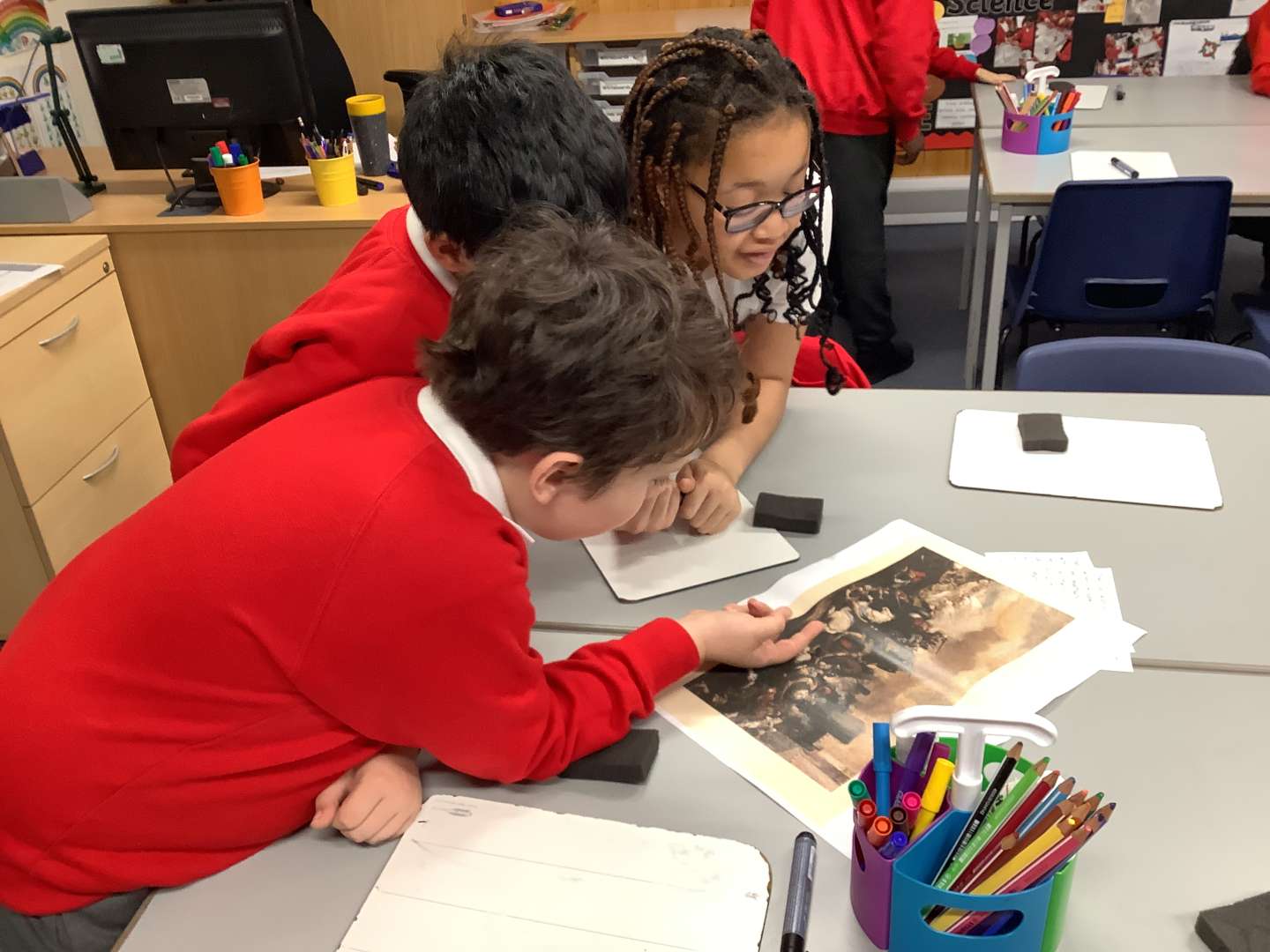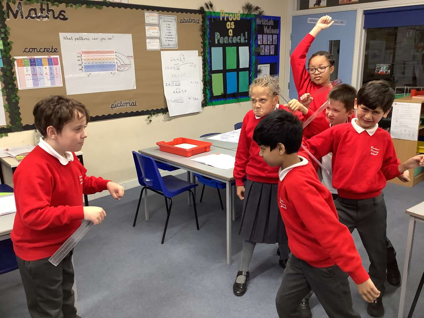 This week in English, we have immersed ourselves in our new unit of work- Action scene. We have delved deeper into the intense battle scene between Macbeth and Macduff. Through acting, children thought about how different characters may have felt at different points of the battle scene. We also unpicked the text in detail and explored key vocabulary, thinking about the author’s intentions on the reader. We are looking forward to writing our own action scene.