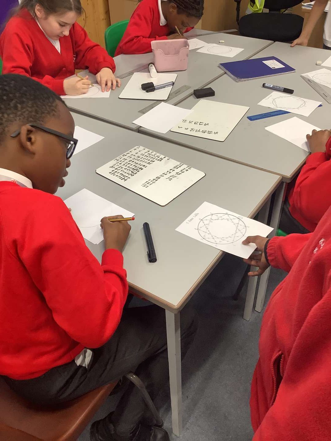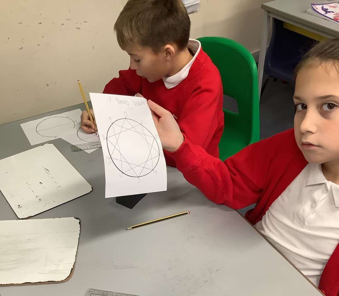 This week, in Maths we began our new unit of multiplication and division by creating our own ‘multiplication wheels’. We then used these to explore and compare patterns in different timetables. We spotted patterns such as, in the 5 timetables all digits end in 5 or 0, creating a straight line up and down on our ‘multiplication wheel’. Another example is all multiples of 8 end with an even number, creating a pentagon on our ‘multiplication wheel’.