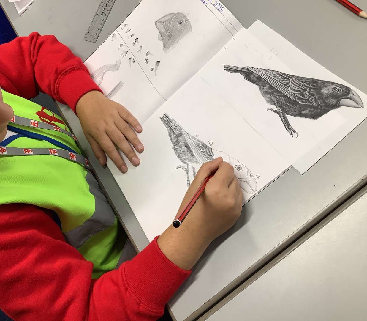 Over the past few weeks, Year 6 have been developing their observational drawing skills, focusing on the challenging but rewarding task of creating scientifically accurate illustrations of Galapagos finches. Drawing inspiration from real-life studies, the children have embraced the technical aspects of scientific illustration, using a variety of pencil grades to experiment with texture, tone and fine detail.
